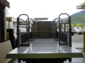 高圧ガス容器運搬用ラック / 垂直昇降式パワーゲート取付